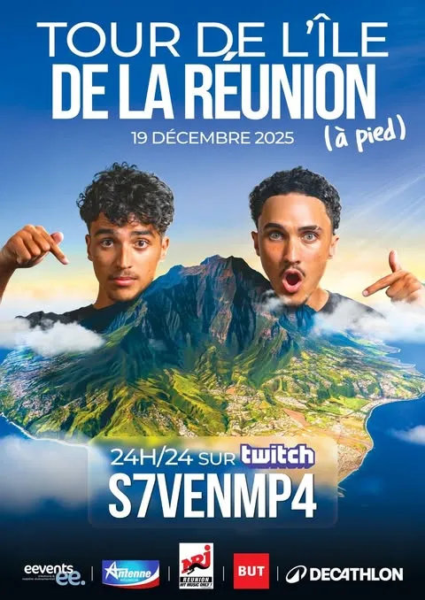 C’est un défi aussi audacieux que profondément humain que s’apprêtent à relever deux jeunes créateurs réunionnais. S7VEN et Noah Ribot se lancent dans un pari fou : faire le tour de La Réunion à pied, en seulement cinq jours, tout en diffusant l’intégralité de l’aventure en live 24 heures sur 24 sur leurs réseaux sociaux, notamment sur Twitch.