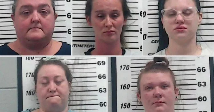 Quatre sont accusées de maltraitance sur enfants : Sierra McCandless, Oci-Anna Kilburn, Misty Shyenne Mills et Jennifer Newman. La cinquième, Traci Hutson, est inculpée pour ne pas avoir signalé les faits de mauvais traitement sur un mineur.
