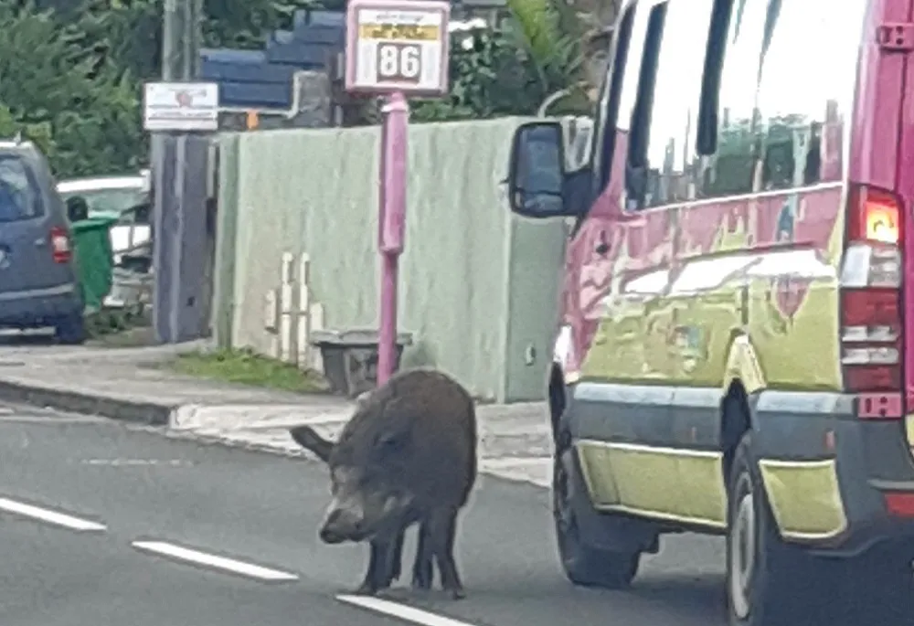 Les Avirons : un gros sanglier en balade Allée du cimetière(VIDÉO)