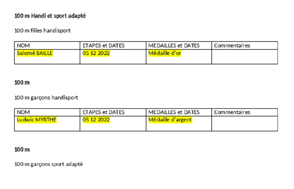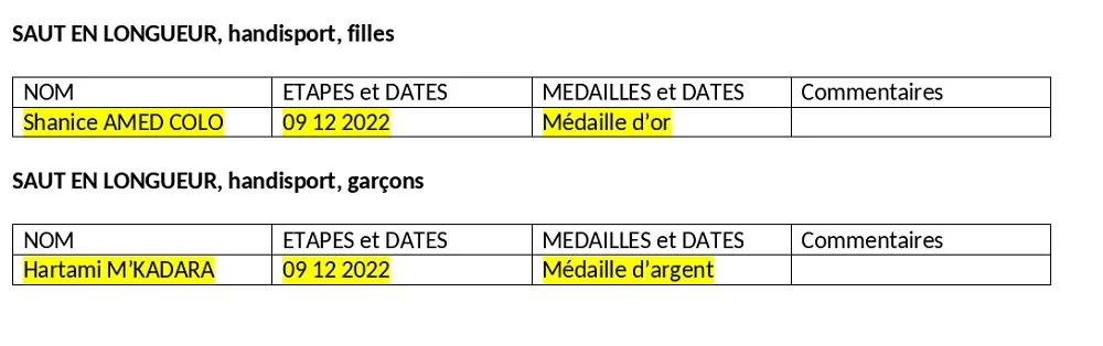 - Jérémie MAILLOT (100 m et saut en longueur T20)