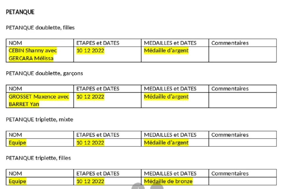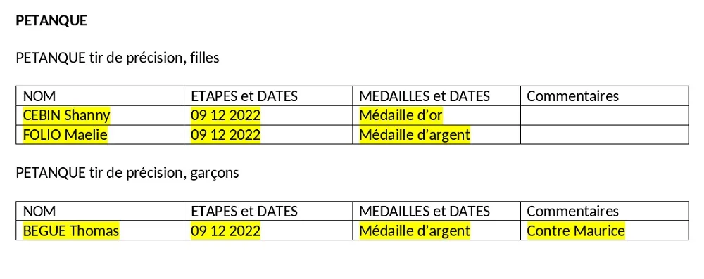 Bravo à nos médaillés d’argent :