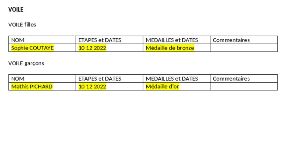Bravo à nos médaillées d’or :