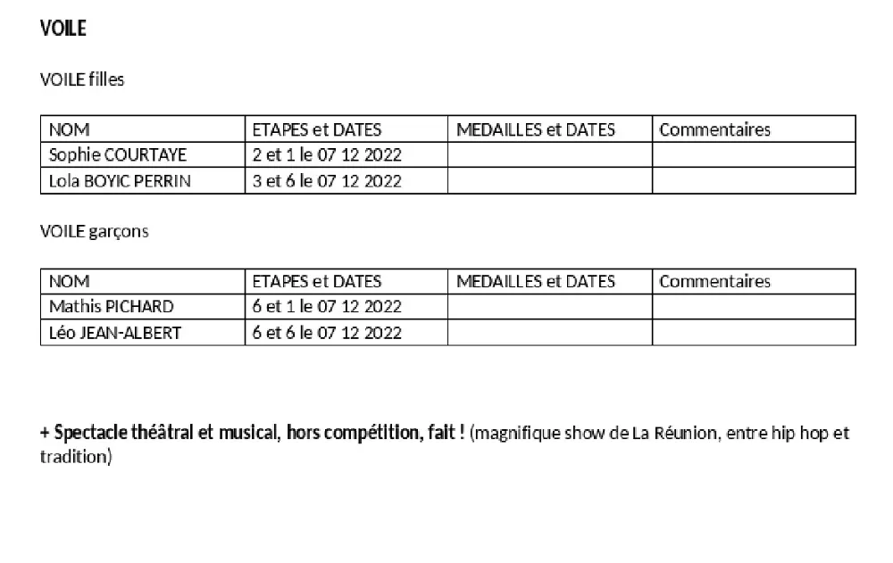 Une équipe de 4 coachs et de deux responsables de discipline qui savent que le temps court plus vite parfois, qui savent que l’accompagnement n’est pas un vain mot, qui savent qu’être là, c’est être avec chacun des jeunes, les comprendre, les entendre, les motiver, valoriser leurs capacités jusqu’à atteindre des performances dignes de tous les combats. Merci à chacun de vous !