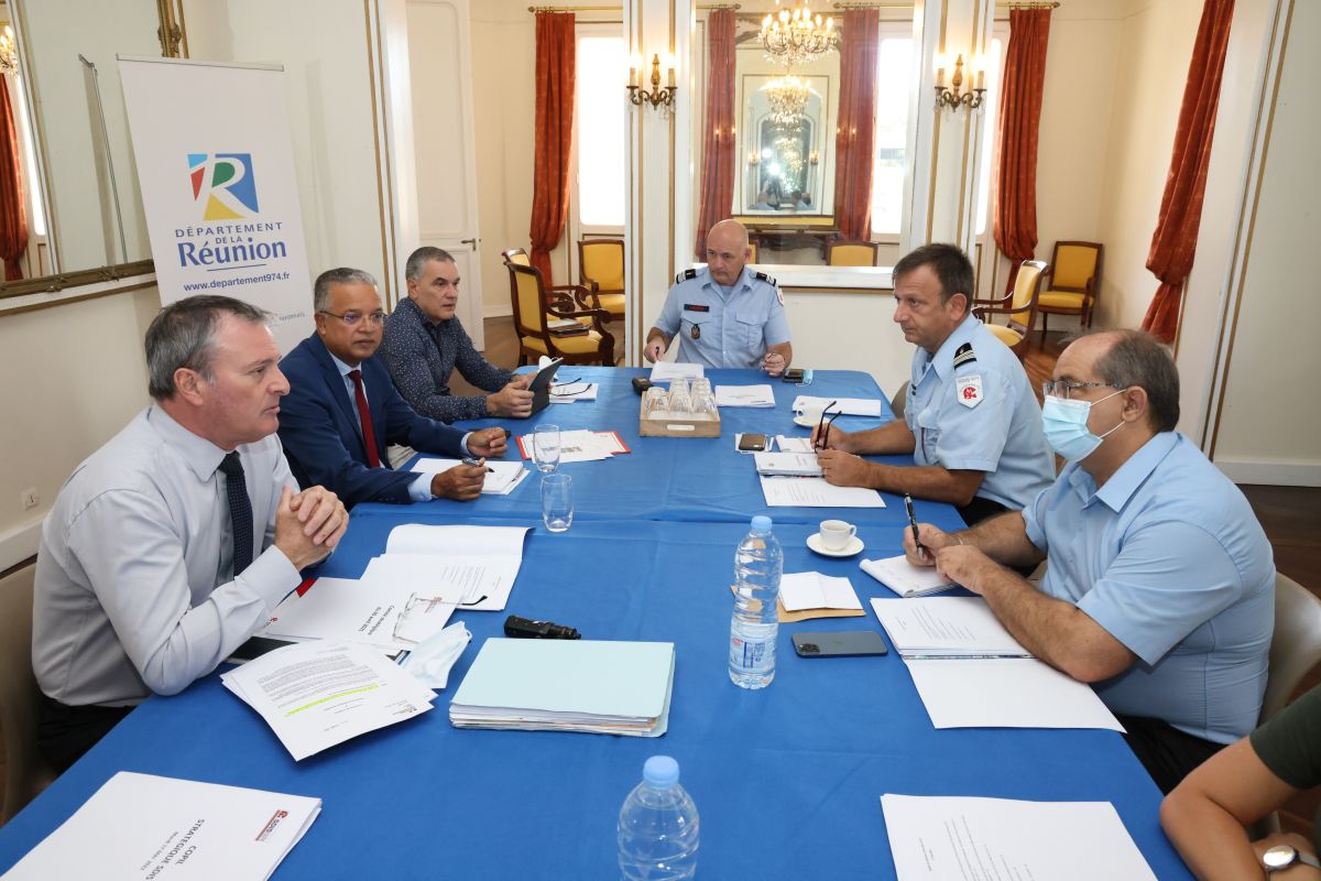 Ce mardi 17 mai, Cyrille Melchior, Président du Conseil départemental a présidé aux côtés de Jacques Billant, préfet de La Réunion le comité de pilotage stratégique du SDIS en présence de Stéphane Fouassin, Président délégué du Conseil d’administration du SDIS, et le Colonel Frédéric Léguillier, directeur du SDIS.