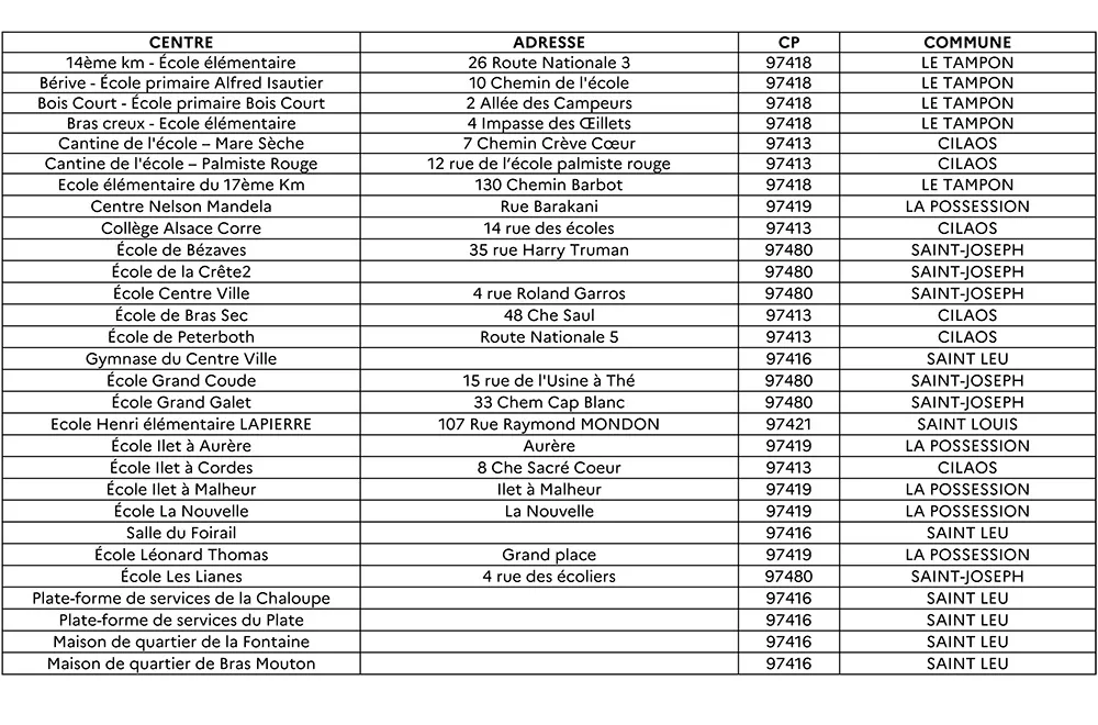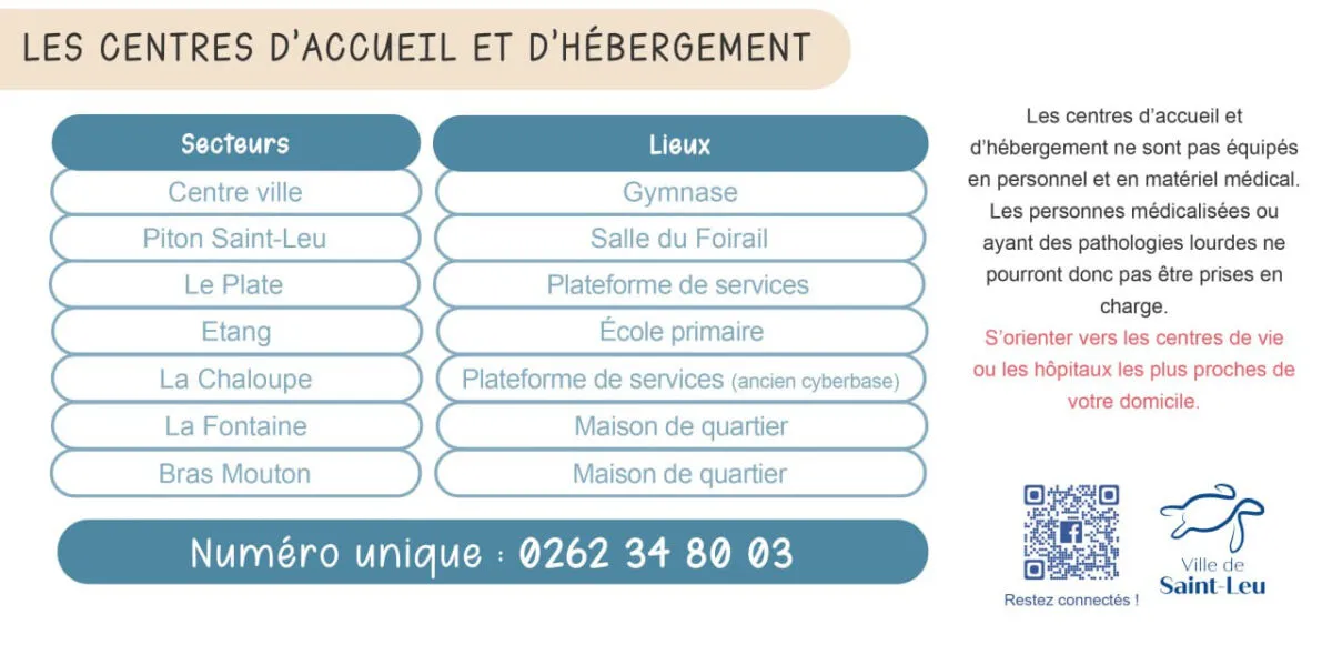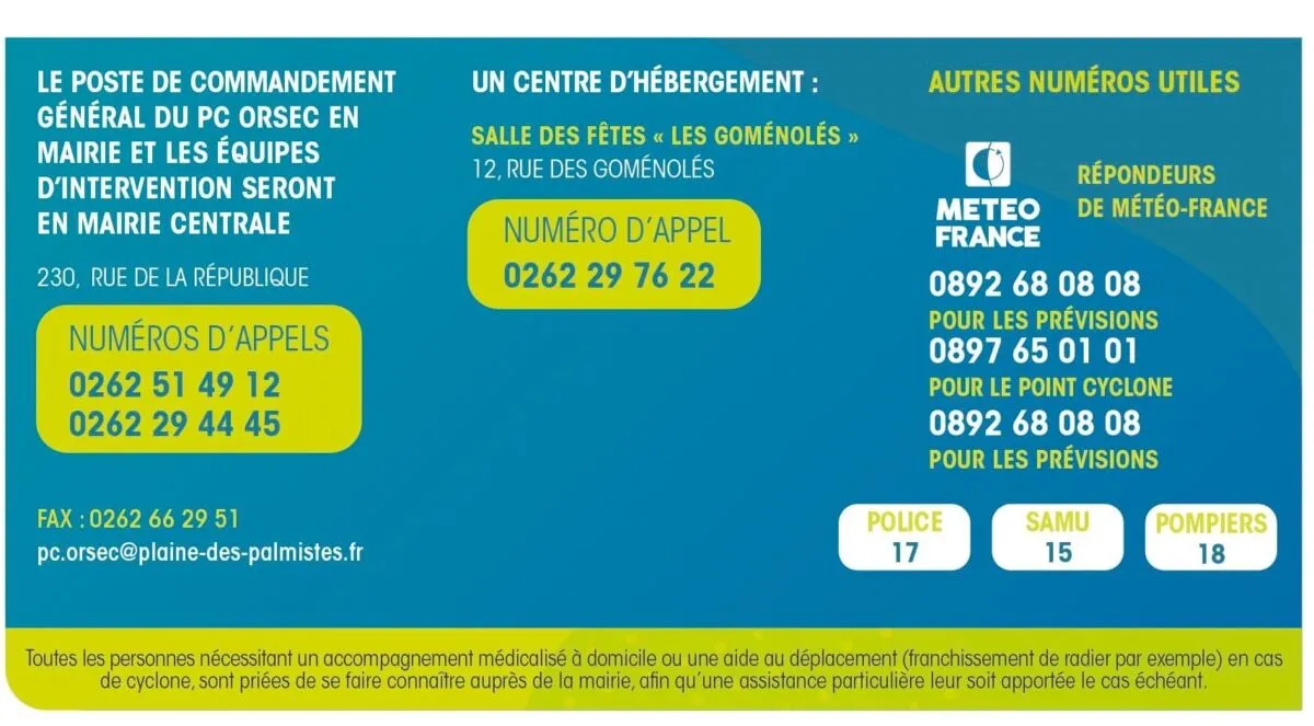 Le Poste de commandement communal est également ouvert  en mairie du centre. Numéro d’appel : 0262 35 80 00