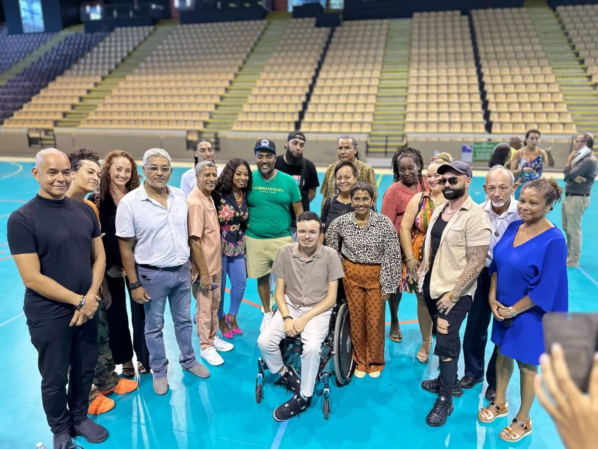 T-Matt, Dano, Médérice, Missty, Lindigo… Ils sont plus d’une dizaine d’artistes à assister à la présentation au stade Jean Ivoula, ex-stade de l’Est du concert solidaire qui sera organisé ce samedi 29 mars en faveur des victimes du passage dy cyclone Garance, un mois plus tôt, sur l’île.