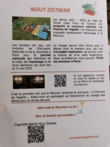 nout zistwar par Céline Hardelain 18 décembre 2022 1 min de lecture Ne manquez pas toute l’actualité de La Réunion ! Abonnez-vous à la newsletter de Free Dom ! Valider Partager Facebook Twitter Pinterest Linkedin Whatsapp Reddit Email Céline Hardelain Laisser un commentaire Annuler la réponseYour email address will not be published. Enregistrer mon nom, mon e-mail et mon site dans le navigateur pour mon prochain commentaire. Current ye@r * Leave this field empty Articles récents... Mercredi 31 décembre 2025 – Météo, éphéméride et horoscope du jour Hommage à Johnny Hallyday sur Free Dom 2 ce 5 décembre Mardi 30 décembre 2025 – Météo, éphéméride et horoscope du jour Saint-Joseph : découverte de 2337 plants de cannabis, arrestation de 2 individus Point sur le réseau routier départemental, 29 décembre à 16H30 Suicide sur le pont de la Rivière d’Abord : importante mobilisation des secours et des forces de l’ordre Radier submergé à Ilet Furcy : la route de Cilaos fermée à la circulation cette nuit Fortes pluies : appel à la plus grande prudence à Saint-Paul Saint-Gilles-les-Bains : une route impraticable, les riverains montent au créneau (VIDEOS) Très grands excès de vitesse : un délit passible de prison depuis le 29 décembre 2025