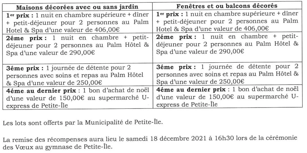Les résultats du concours seront donnés le samedi 18 décembre 2021 à 16h30, au Gymnase de Petite-Île.