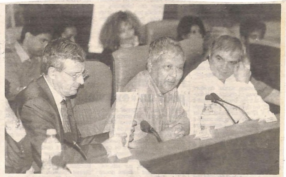 Camille Sudre, le préfet Jean Daubigny, Paul Vergès et Michel Vergoz à la tribune de l’assemblée régionale (archive JIR-Free Dom 1998)