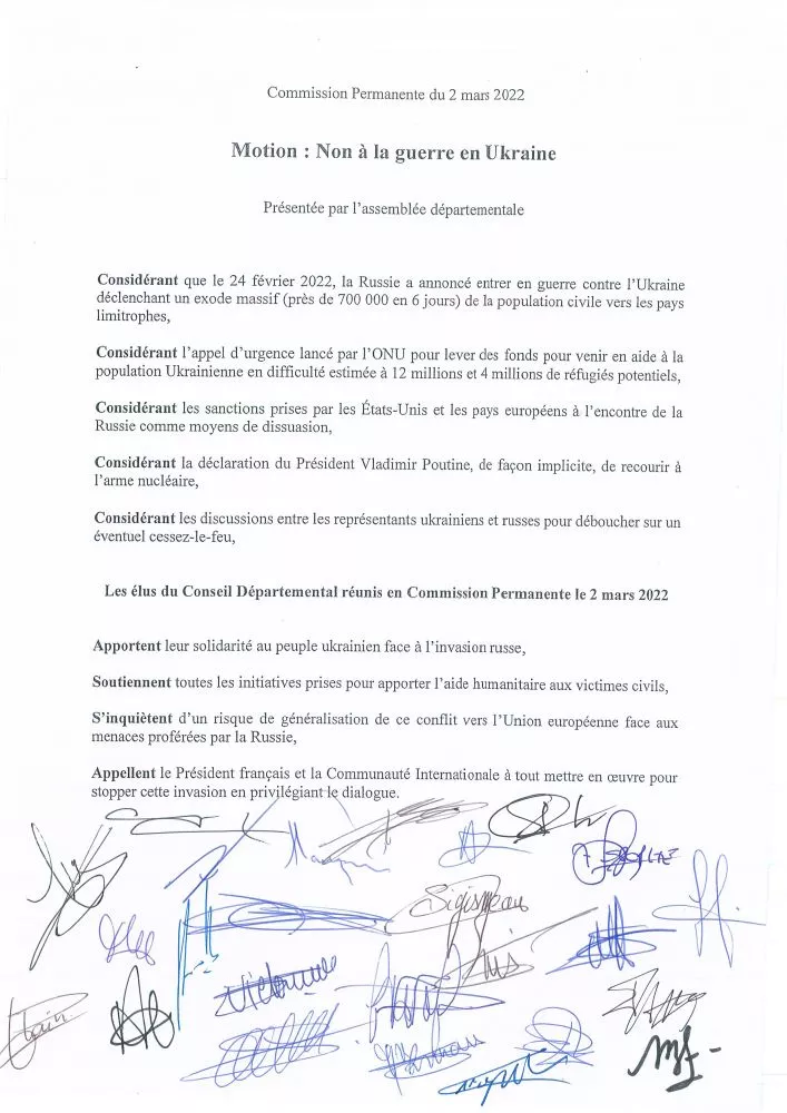 La situation sanitaire et humanitaire en Ukraine interpelle les élus de l’Assemblée départementale. Un fonds de solidarité ayant été ouvert par le ministère des affaires étrangères, les élus ont voté en procédure d’urgence une aide à hauteur de 20 000 €.