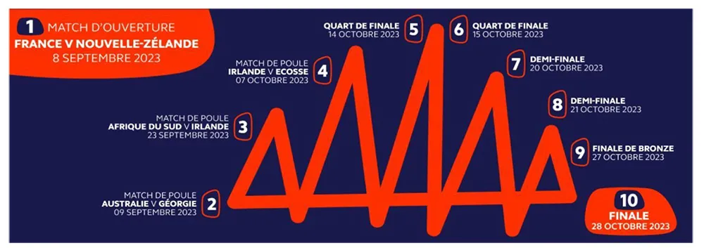 Nous sommes à 1 mois de l’ouverture de l’événement tant attendu en France, la Coupe du Monde de Rugby 2023. Cette 10ème édition de la Coupe du Monde de Rugby sera officiellement lancée le 8 septembre 2023 avec le match d’ouverture de la France contre la Nouvelle-Zélande sur la pelouse du Stade de France.