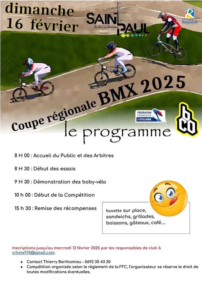 Les amateurs de BMX ont un rendez-vous incontournable le dimanche 16 février 2025 à Saint-Paul, sur l’île de La Réunion, pour la Coupe Régionale BMX. Organisé sous l’égide de la Fédération Française de Cyclisme (FFC), cet événement promet une journée riche en adrénaline et en spectacle.
