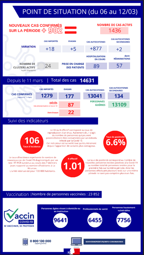 Coronavirus à La Réunion : 15 004 cas, 87 décès et 13 109 guérisons .