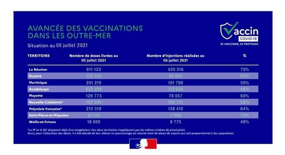 Selon les dernières données, un total de 611 133 doses de vaccin ont été livrées à La Réunion au 05 juillet. Celles-ont permis de réaliser 430 316 injections.