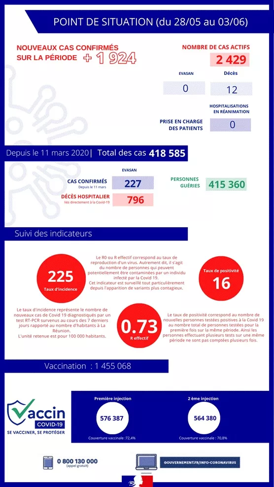 Compte tenu des 415 360 guérisons et des 796 décès depuis le début de la crise sanitaire,