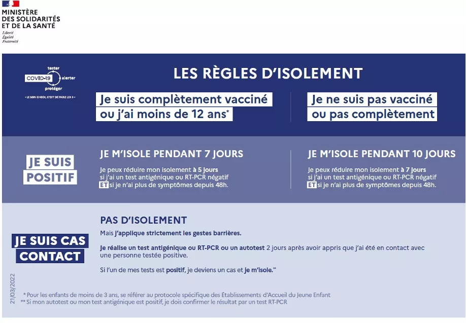 Evolution des modalités d’isolement pour les cas contacts