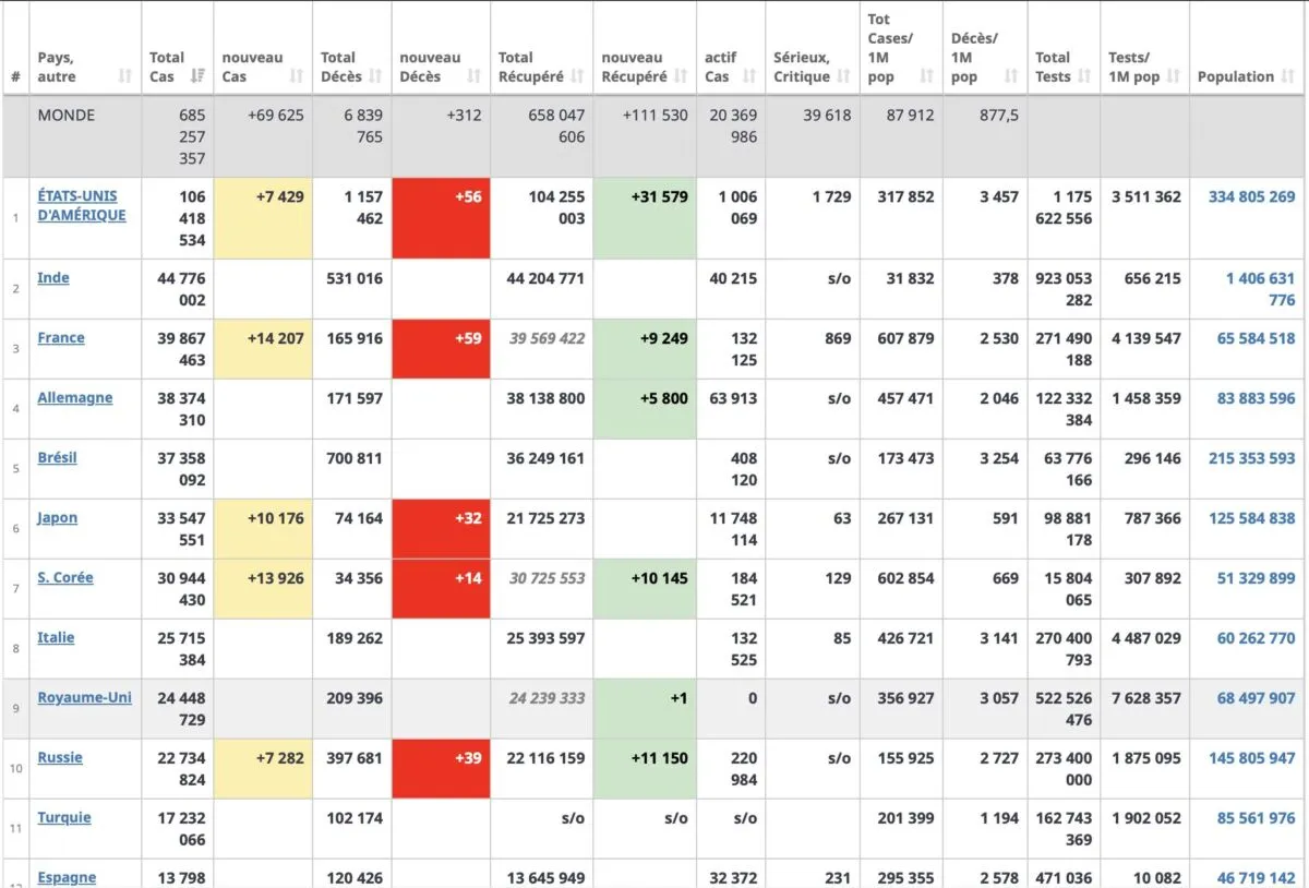 Nombre de cas dans le monde au mercredi 12 avril 2023 : 685.257.357