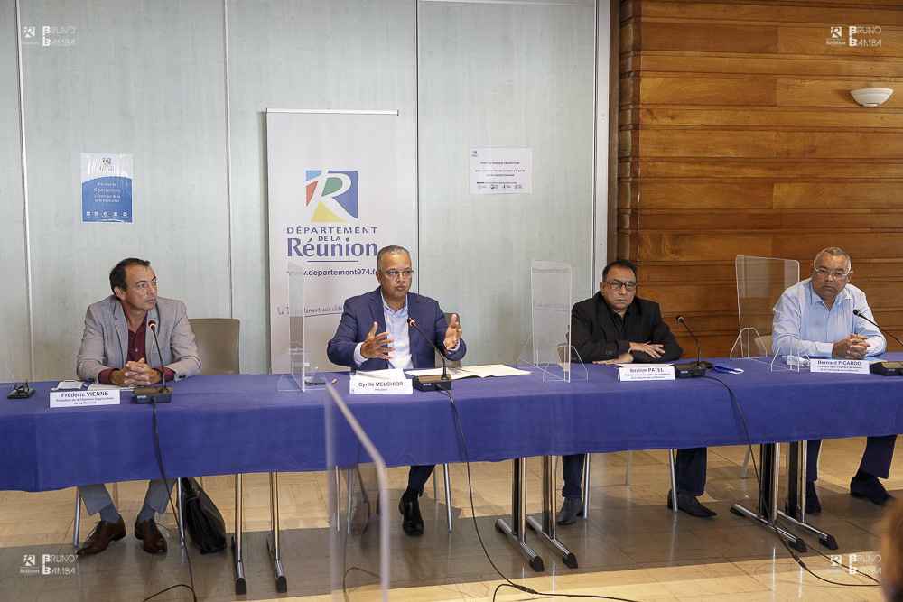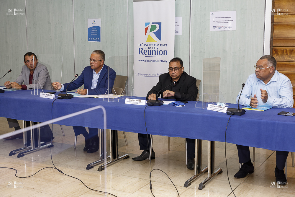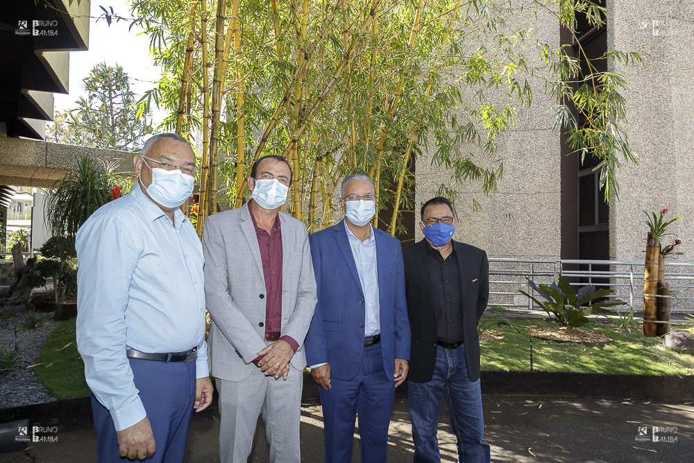 Apporter des solutions de soutien et d’accompagnement aux entreprises réunionnaises dans le cadre des compétences du Département, pour faire face à la crise sanitaire et ses conséquences. Tel était l’objet de la rencontre qui s’est tenue ce mardi 10 août au Palais de la Source, entre le président du Conseil départemental Cyrille Melchior et les présidents des 3 chambres consulaires, représentant le monde de l’entreprise à la Réunion :