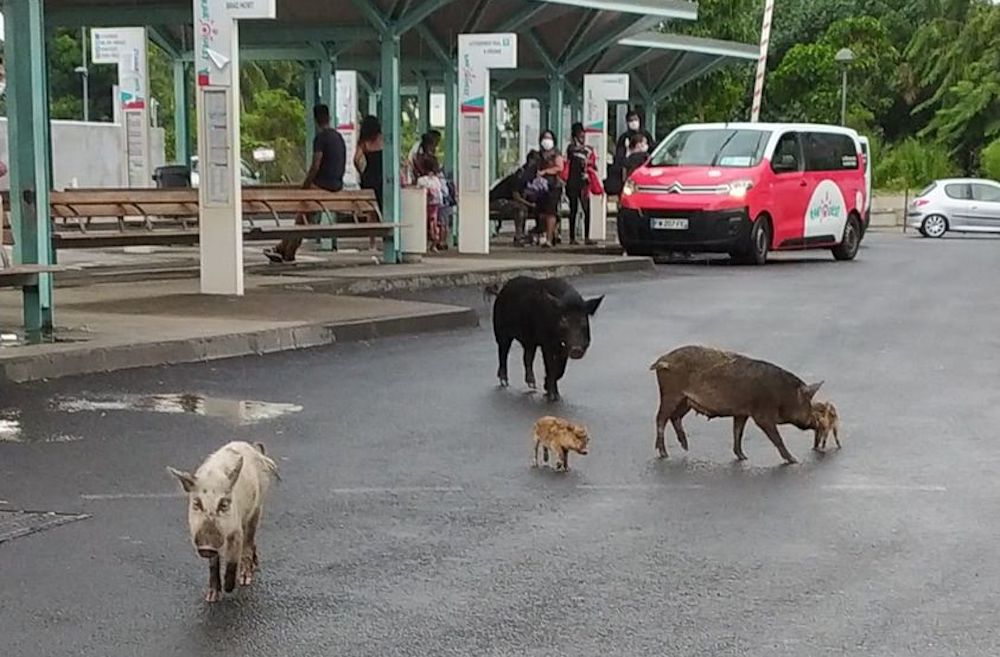 Des cochons dans la gare de Saint-Paul (VIDEO)