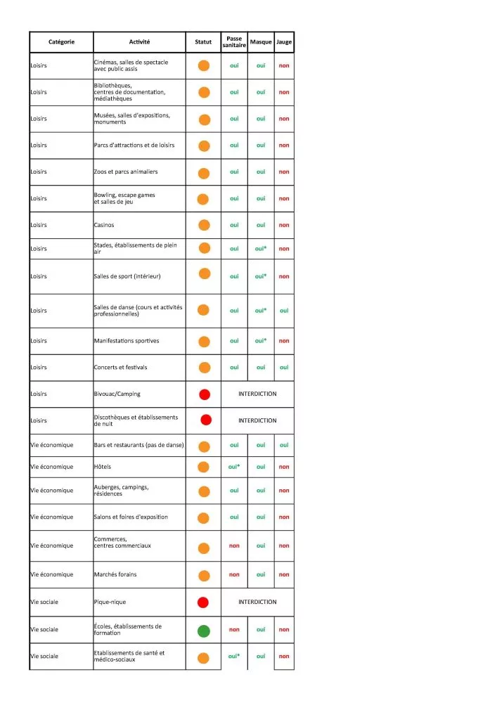 • Interdiction des activités de danse dans tous les établissements recevant du public (hors cours de danse et activités professionnelles) ;