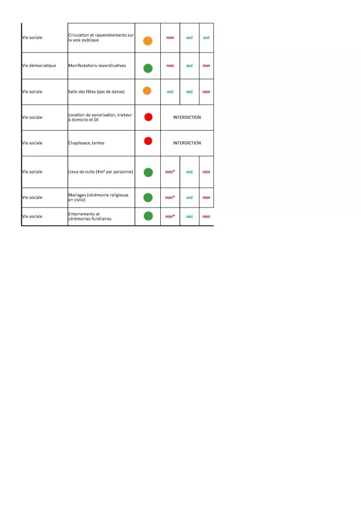 • Instauration d’une jauge de 4m2 par personne, pour tous les évènements sportifs, festifs, culturels et cultuels sur la voie publique ;