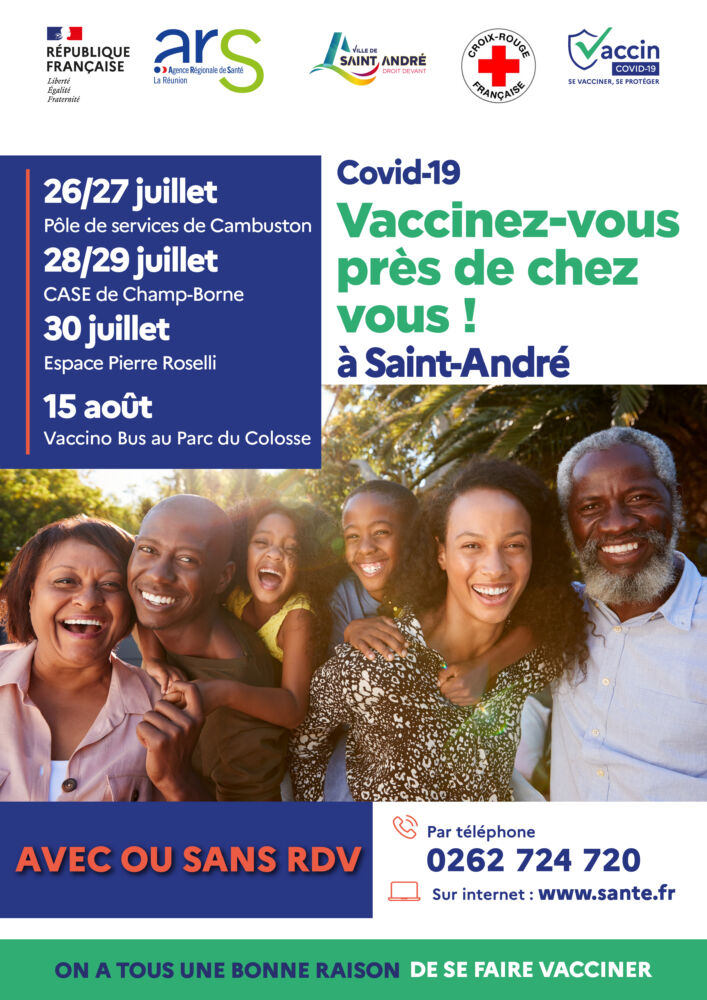 Avec ou sans rendez-vous, bénéficiez d’une première dose de vaccin grâce aux opérations de proximité « Aller Vers » organisées par l’ARS, La Croix Rouge et la Ville de Saint-André.