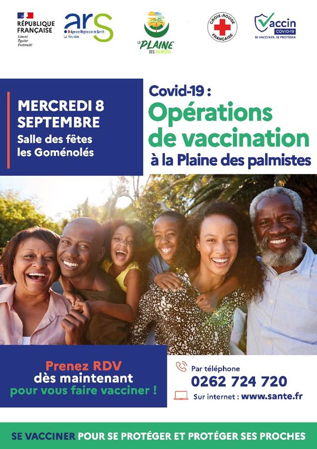 Dans le cadre de la lutte contre la Covid et afin de favoriser l’accès à la vaccination au plus grand nombre, le Maire de la Plaine des Palmistes informe ses administrés qu’une opération de vaccination de proximité sera bientôt organisée par l’ARS de la Réunion et la Croix Rouge, en partenariat avec la municipalité.