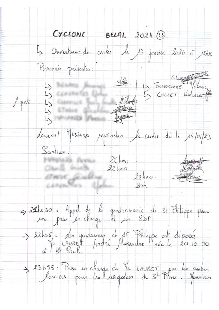 A 22h06, les gendarmes de Saint-Philippe déposent alors la personne au centre de Vincendo. Plus tard, à 23h55, elle sera orientée vers les urgences de Saint Pierre. Ces faits sont attestés par les divers PV et mains courantes ci -joints.