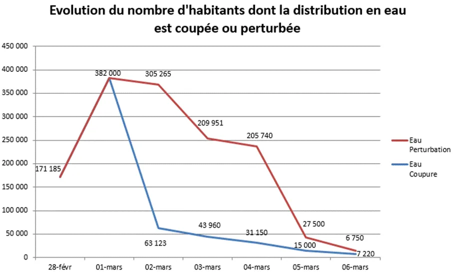 •7 220 personnes sont encore totalement privées d’eau, contre 15 000 la veille.