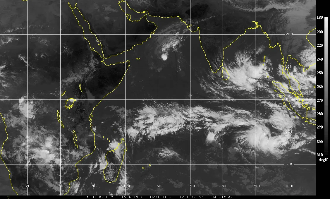 Il s’agit donc d’un système particulièrement violent (les rafales sont estimées à plus de 300 km/h près du centre) mais qui, progresse loin des terres habitées (position à plus de 3700 km de La Réunion cet après-midi du 22 décembre). Son évolution sur l’Est du bassin, qui devrait durer plusieurs jours.