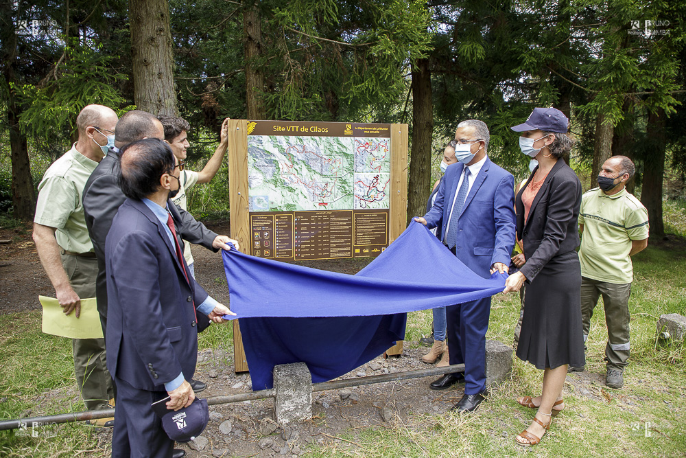 L’ancien site de VTT nouvellement réhabilité a également été inauguré ce 1er octobre. Débutés cette année, les travaux ont permis de créer un réseau de 9 circuits (dont 2 de descente et 7 de cross-country) soit au total 53 km. Les circuits ont été balisés par l’Atelier Bois de l’ONF avec 54 poteaux, 2 panneaux d’accueil et 1 chicane en bois. « Outre la dimension touristique de ce projet, il y a aussi une dimension sportive puisque cette piste sera un excellent terrain d’entraînement pour nos sportifs péi. Nous voulons encourager la pratique du VTT, et plus largement celle des sports de pleine nature » a signalé Cyrille Melchior.
