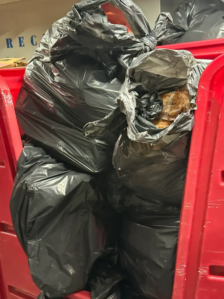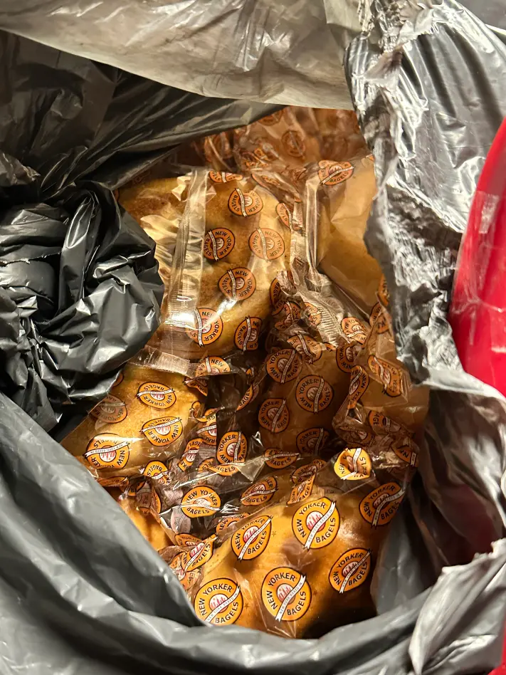 Des photos choquantes montrent des sacs à ordures pleins de sandwichs et de bagels qui sont mis à disposition à l’hôtel quatre étoiles Row NYC près de Times Square, où la ville paie un tarif journalier allant jusqu’à 500 $(465 €) par chambre, a déclaré l’employé de l’hôtel Felipe Rodriguez .