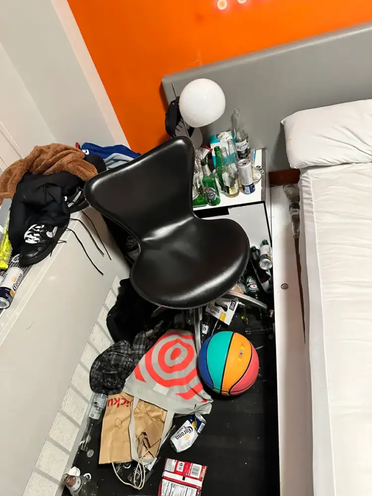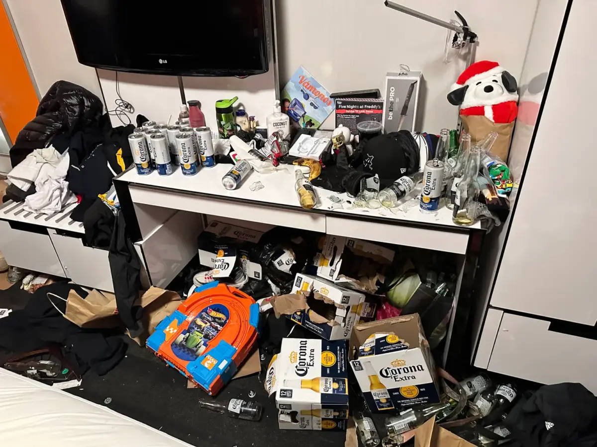 D’autres images montrent une chambre d’hôtel pleine de canettes de bière et de bouteilles vides à la suite d’une soirée pendant la Coupe du monde en novembre, a déclaré Felipe Rodriguez.