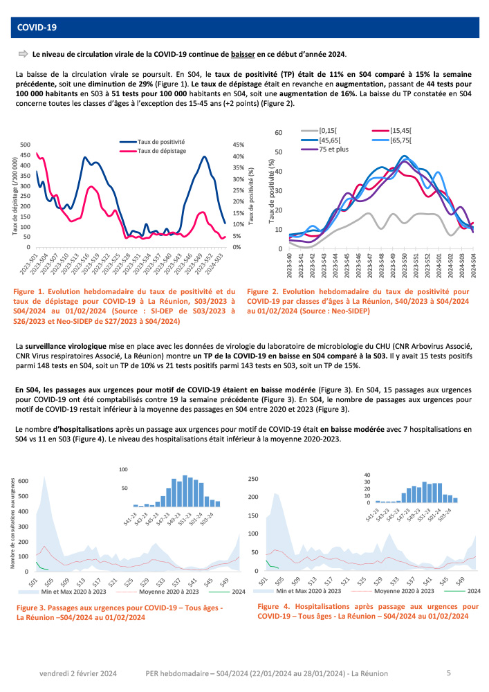 - COVID-19 : La circulation virale poursuit sa diminution en S04. Les passages aux urgences et les hospitalisations également.