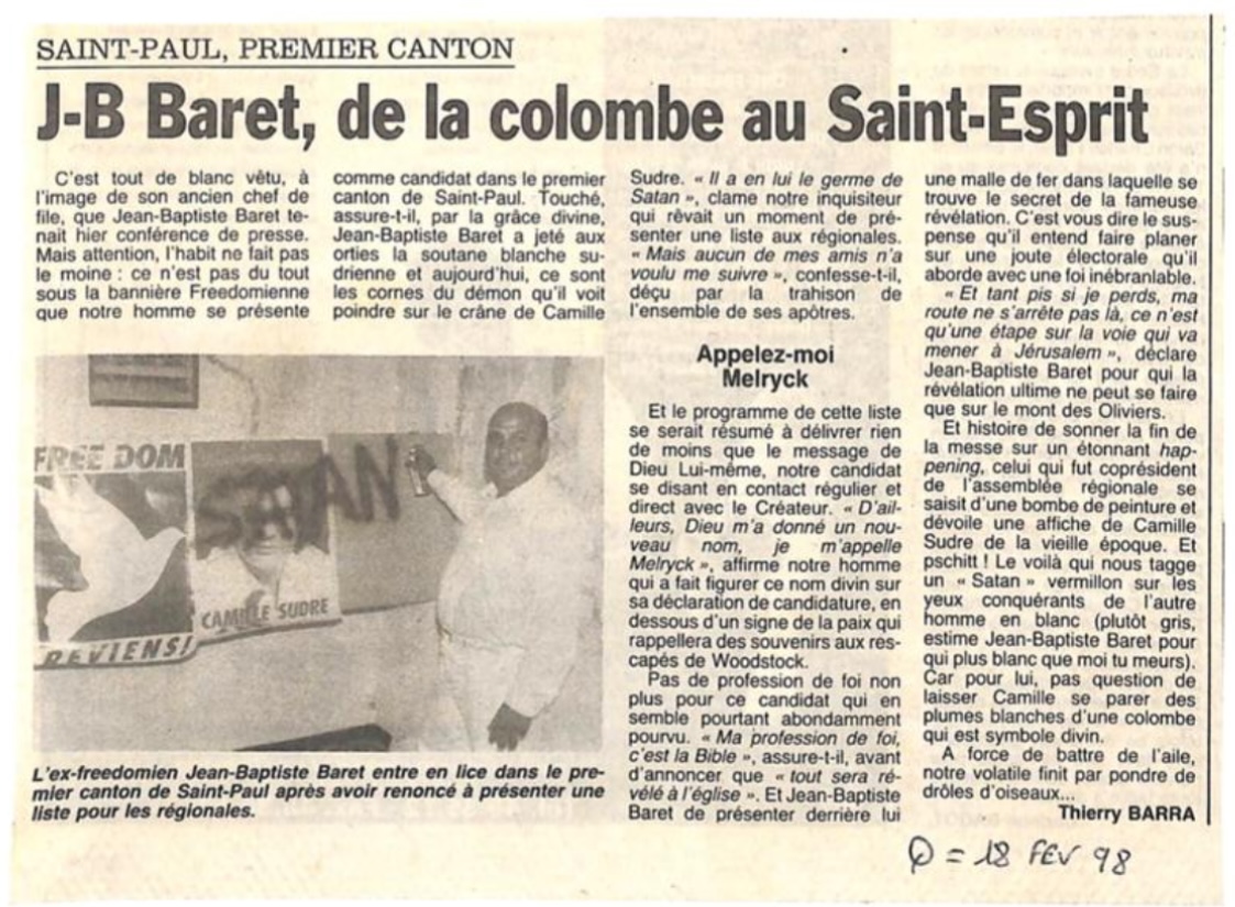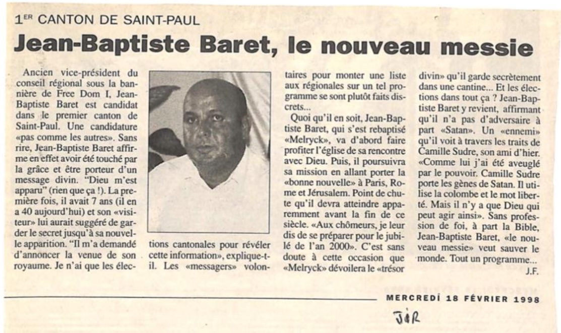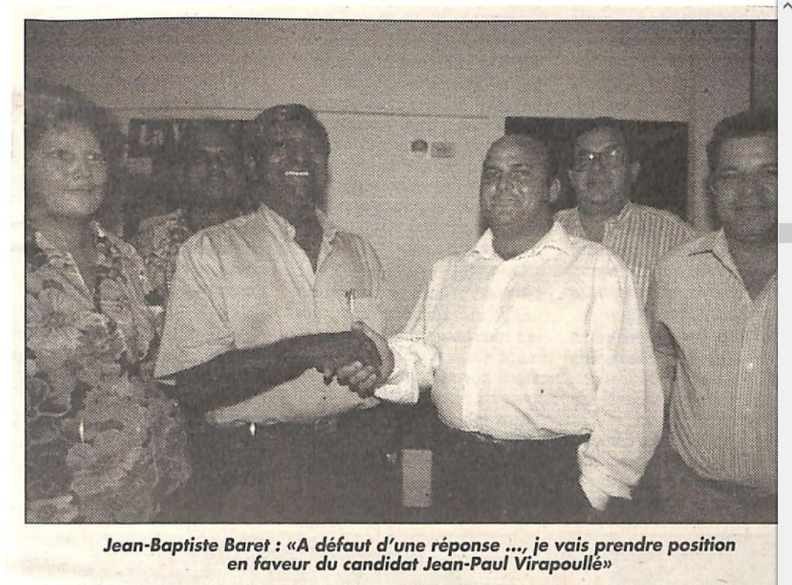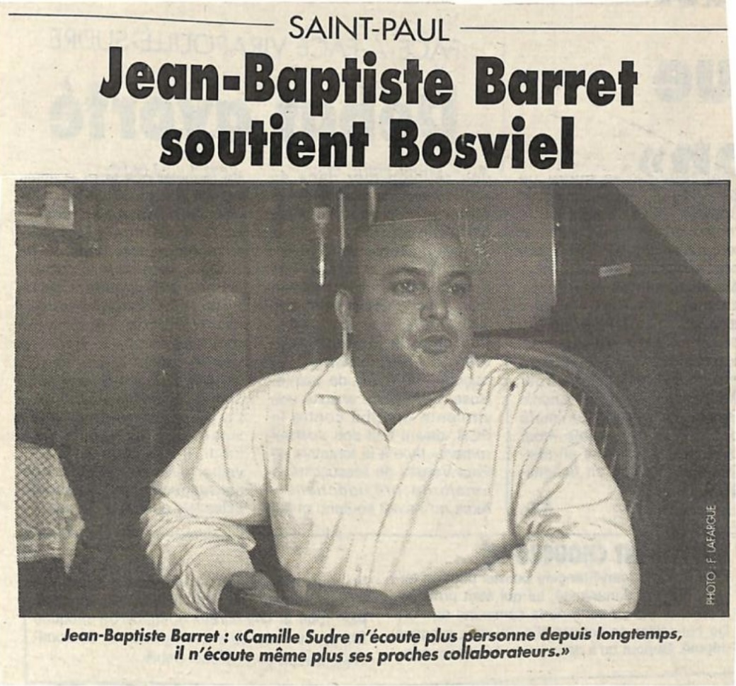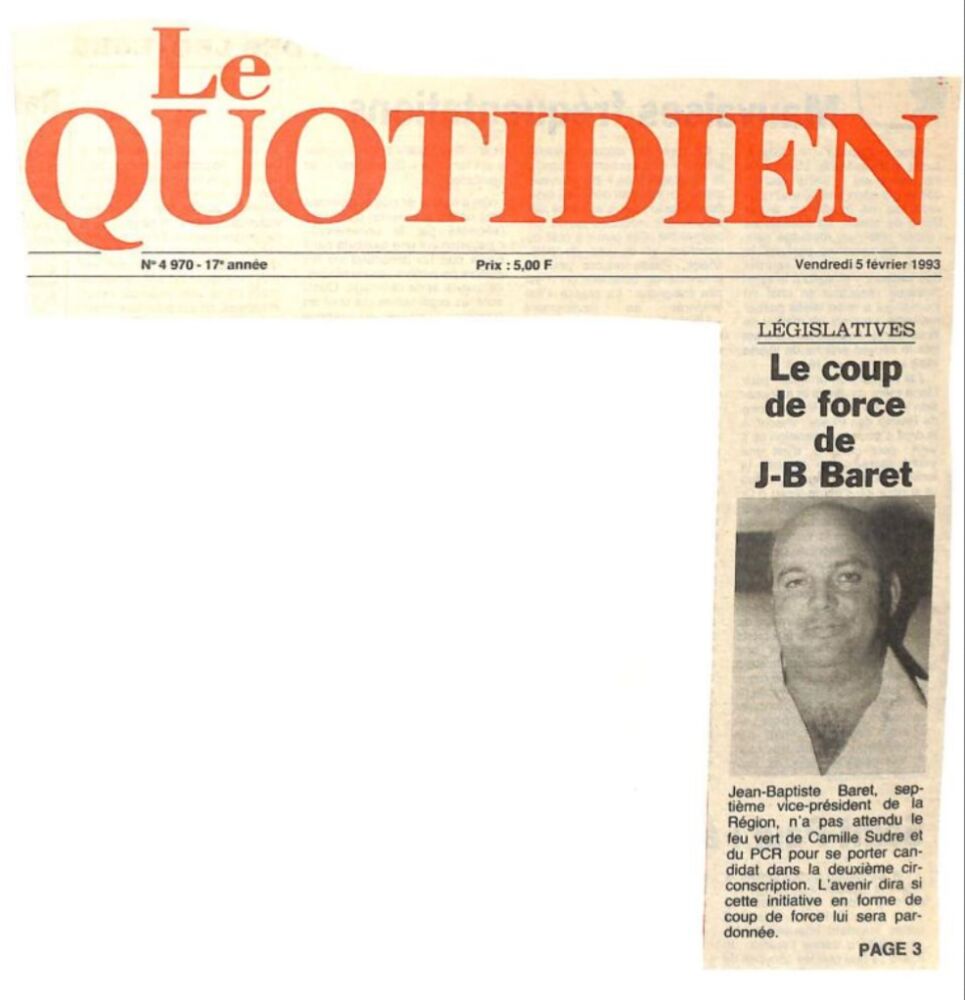 Ci-dessous quelques extraits de la carrière politique de Jean-Baptiste Baret (Archives le Quotidien, le JIR, le Réunionnais, Témoignages et Free Dom)