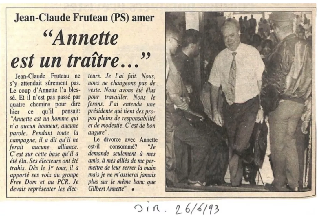 Pourtant, comme le rappel cet article, ça n’a pas toujours été l’entente cordiale entre Gilbert Annette  et Jean-Claude Fruteau (le JIR du 26 Juin 1993-Archives Free Dom)