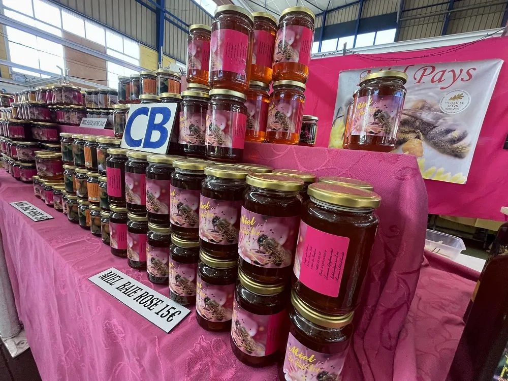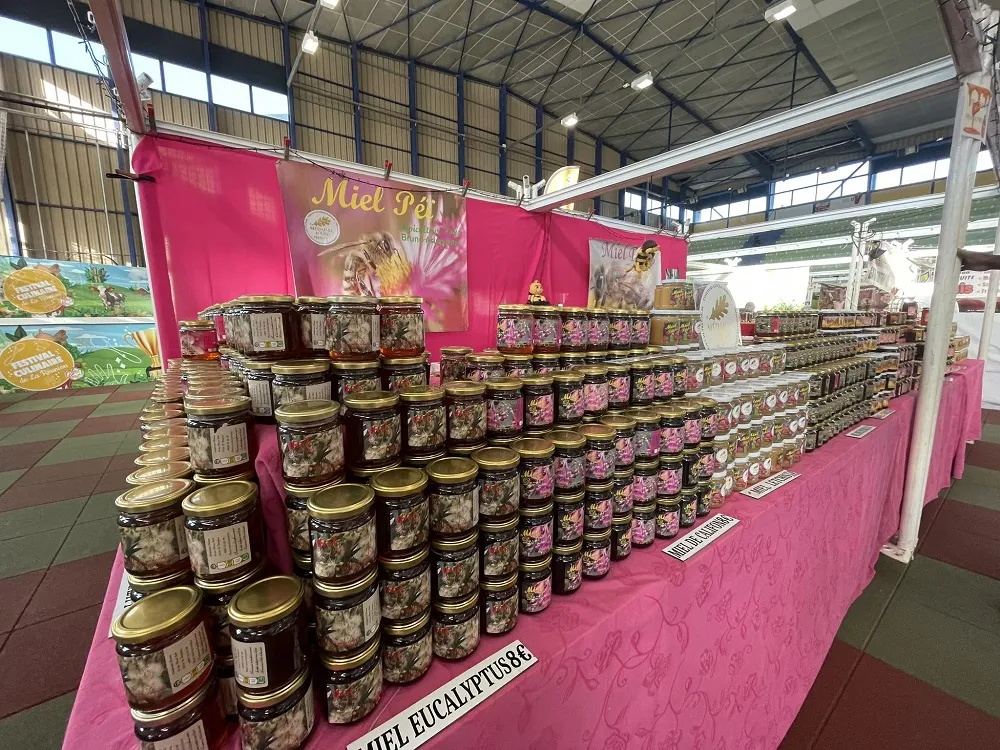 Sur les étals de l’apiculteur, une variété de miels rares est mise en avant, notamment le miel de baie rose, de forêt, d’eucalyptus, ou encore le miel toutes fleurs. Bruno, avec une fierté légitime, présente ses miels primés. Son miel crémeux de letchis a obtenu la médaille d’or au concours agricole, tandis que le miel de camphrier-cannelle a été honoré en tant que miel de forêt médaillé d’or par l’Union nationale des apiculteurs de France.