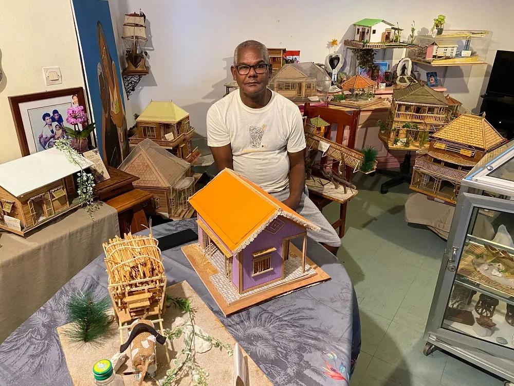 M. Latchimy aime construire des maquettes de maisons créoles. Quand il travaille dessus, il a l’impression de vivre dans un monde de rêve. Son but ultime est d’avoir un espace assez grand pour créer tout un village et partager sa passion avec les autres.