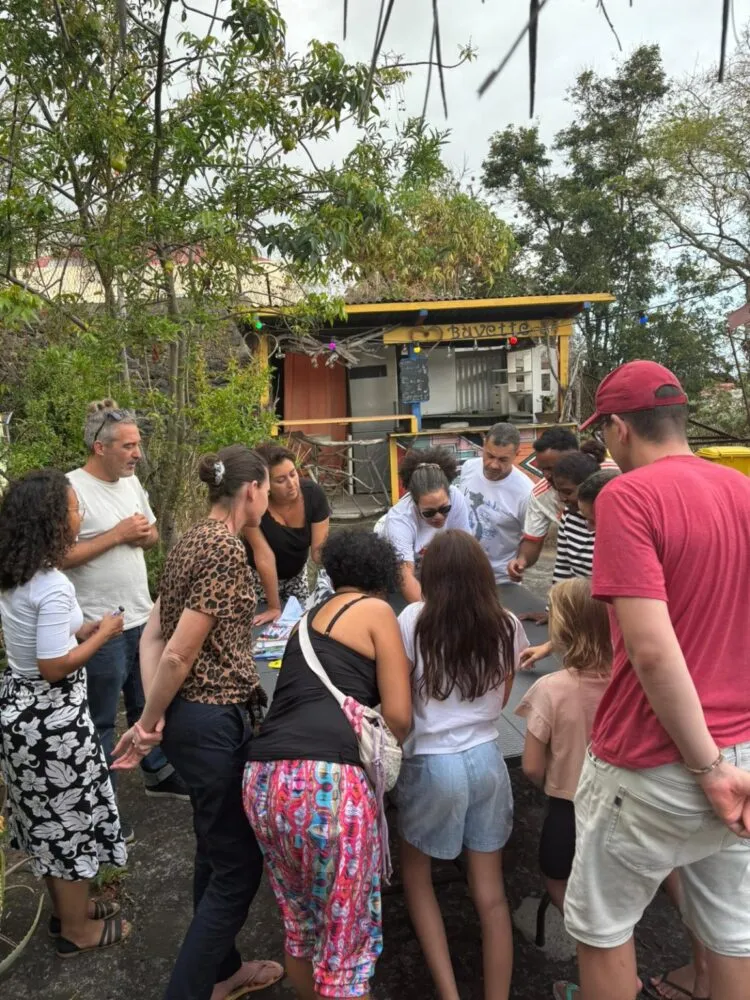 Un des ateliers s’est tenu au Comptoir du Vrac, à Piton Saint-Leu. Avant de se lancer, les participants ont pris un moment pour se projeter dans le défi :