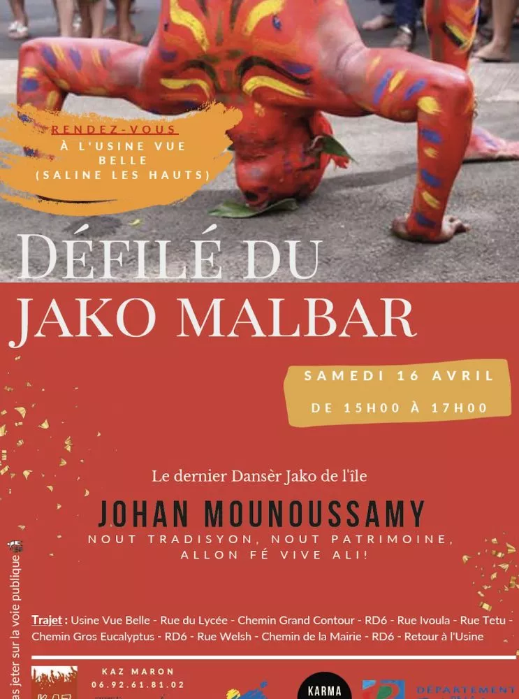 A l’occasion des activités de la semaine du Nouvel An Tamoul, l’Association Kaz Maron organisera cette année le défilé du Jako Malbar, le samedi 16 avril de 15h à 17h à St Gilles les Hauts.