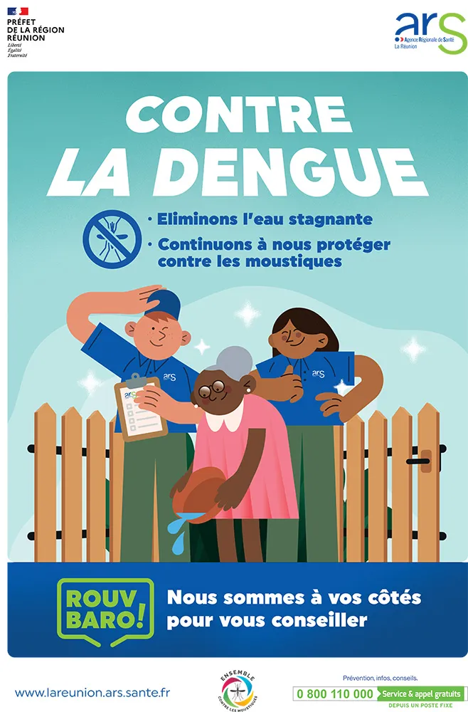 La préfecture et l’ARS La Réunion encouragent les Réunionnais à maintenir les mesures de prévention contre la dengue (élimination de l’eau stagnante, utilisation de répulsifs) et sensibilisent la population à l’accueil des équipes de l’ARS dans leurs cours et jardins pour lutter contre les moustiques. C’est dans ce cadre que la campagne de communication se poursuit cette semaine, avec le témoignage d’une habitante de Saint-Paul qui a reçu la visite d’une équipe de la lutte anti-vectorielle à son domicile.