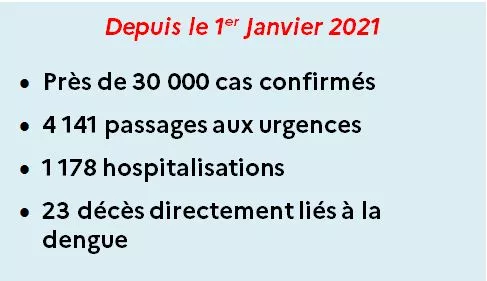 La préfecture, l’ARS et Santé Publique France ont le regret d’annoncer un décès supplémentaire survenu au mois d’août 2021 et dont les résultats obtenus récemment permettent de l’imputer à la dengue.