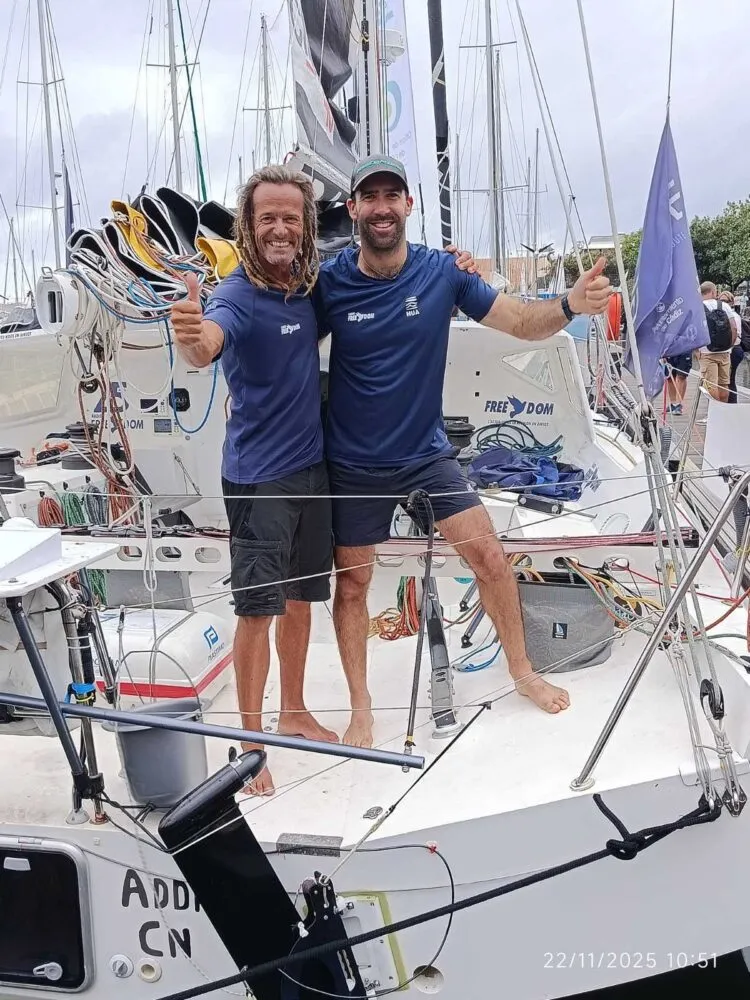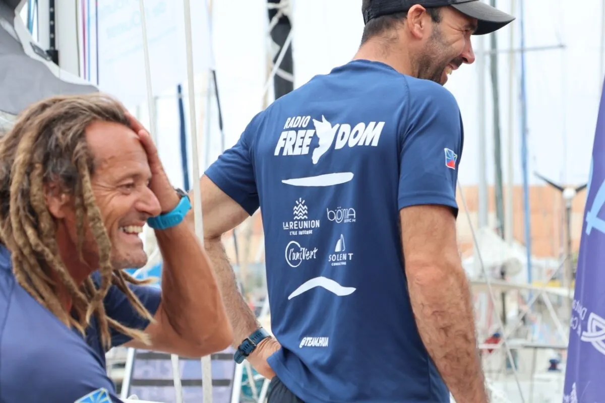 Mais le coup d’envoi a aussi réservé une petite sueur froide à bord du bateau Free Dom. Maxime et Noé ont franchi la ligne… un peu trop vite. Résultat : une pénalité d’une heure infligée dès le départ. Maxime revient sur ce faux pas et rassure les supporters.