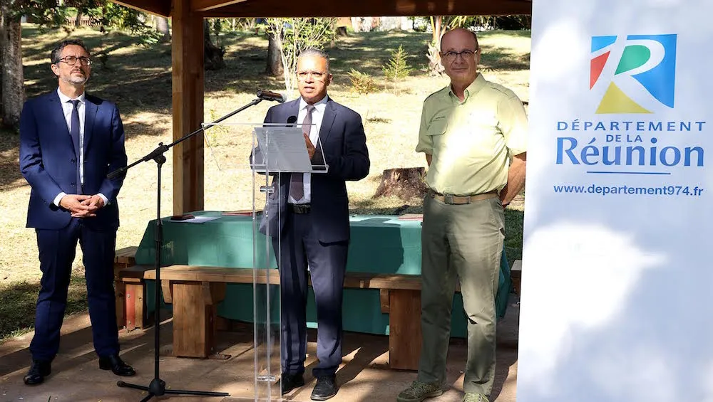 En présence de Jérôme Filippini, Préfet de la Réunion, Cyrille Melchior, Président du Département, et Sylvain Léonard, Directeur régional de l’ONF, ont signé ce mercredi 7 juin une convention de partenariat pour ces trois prochaines années.