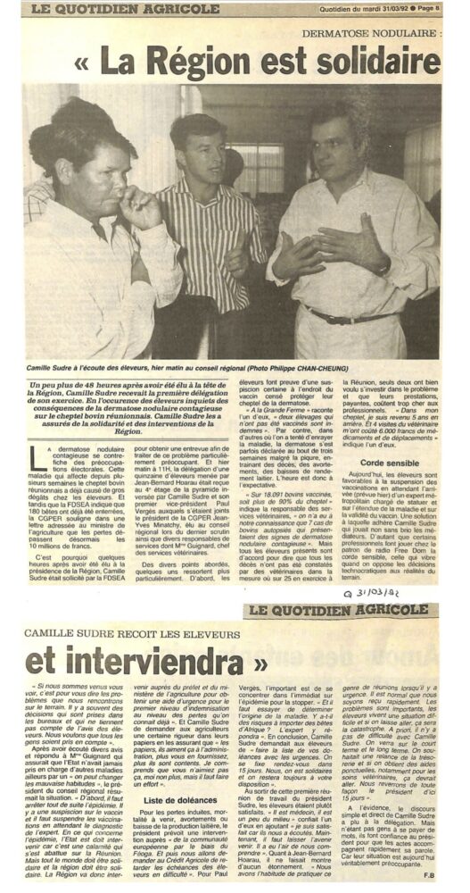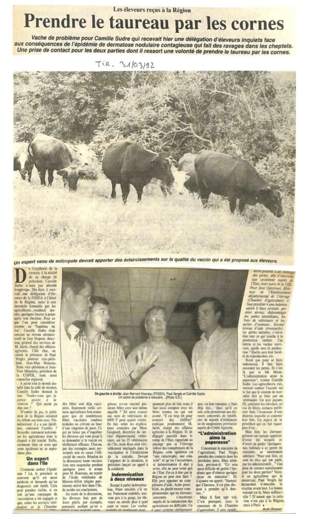 À La Réunion en 1992, la dermatose nodulaire bovine a été vaincue en un laps de temps très court :