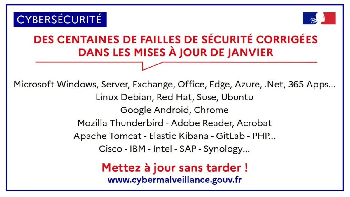 Cybersécurité, des centaines de failles de sécurité corrigées dans les mises à jour du mois de janvier 2023.