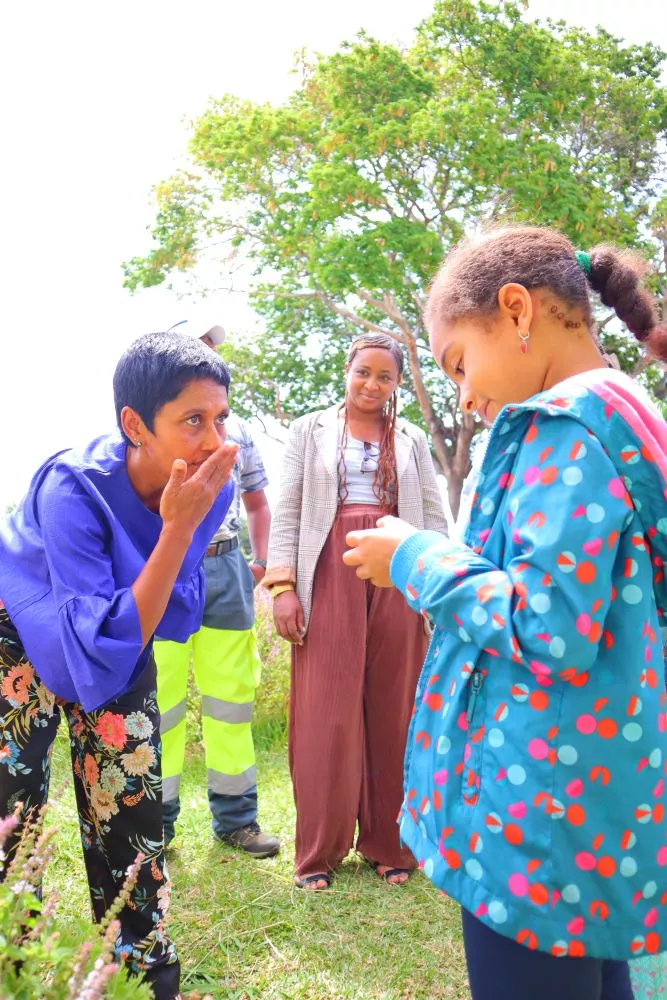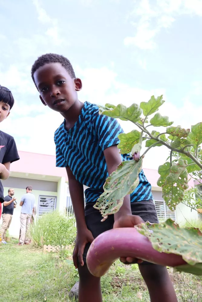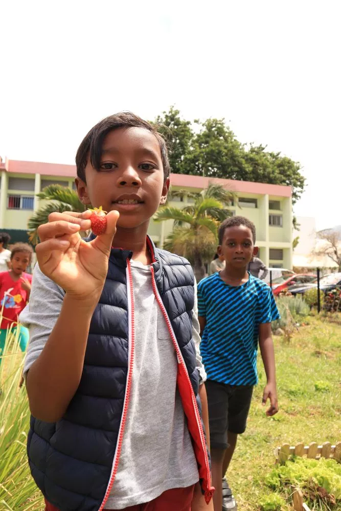 Éricka Bareigts, maire de Saint-Denis : « Verdire, bien manger, renouer avec la terre, retrouver la valeur de nos aliments,… c’est le principe même de l’école du bonheur. Offrir l’opportunité à ceux qui n’ont pas la chance d’avoir des espaces extérieurs afin qu’ils réussissent mieux dans les autres matières car leur esprit sera beaucoup plus apaisé ».