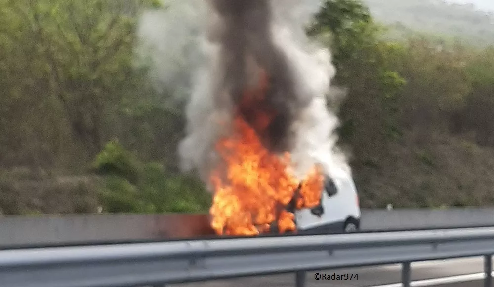 Route des Tamarins : une voiture en feu au niveau de la sortie des Colimaçons