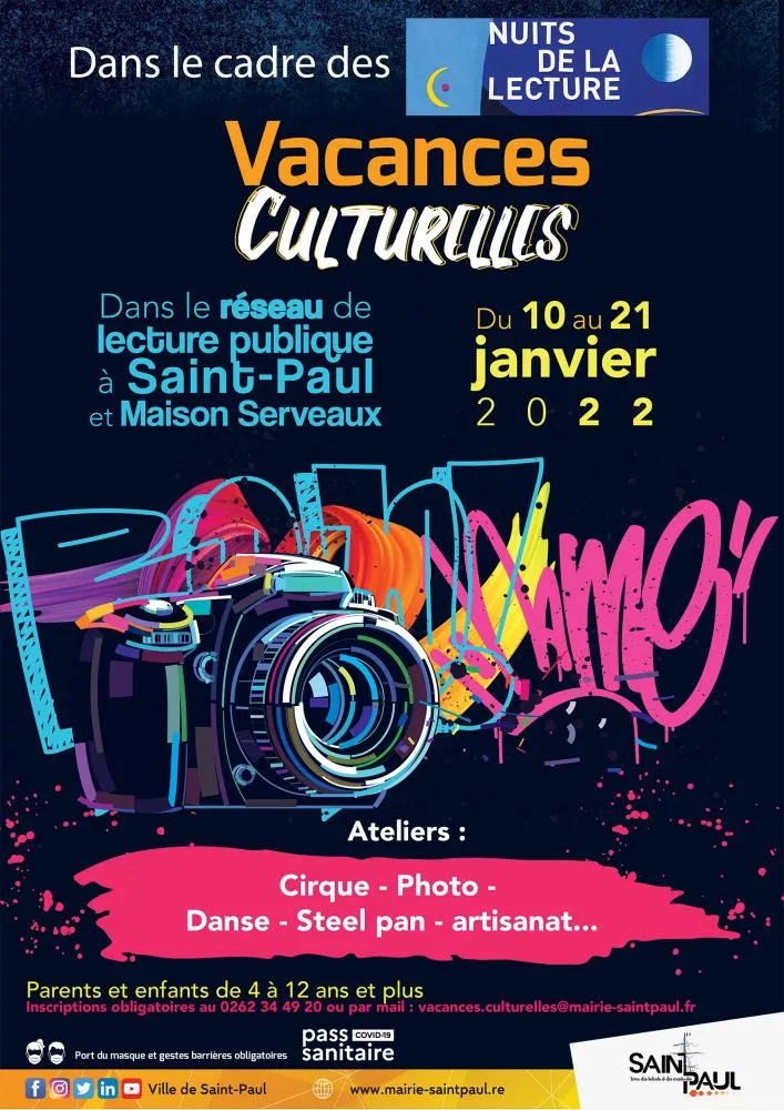 Dans le cadre des nuits de la lecture, l’opération Vacances culturelles revient du 10 au 21 janvier 2022 à Saint-Paul, Ville d’Art et d’Histoire, dans le réseau de lecture publique à Saint-Paul et la Maison Serveaux.