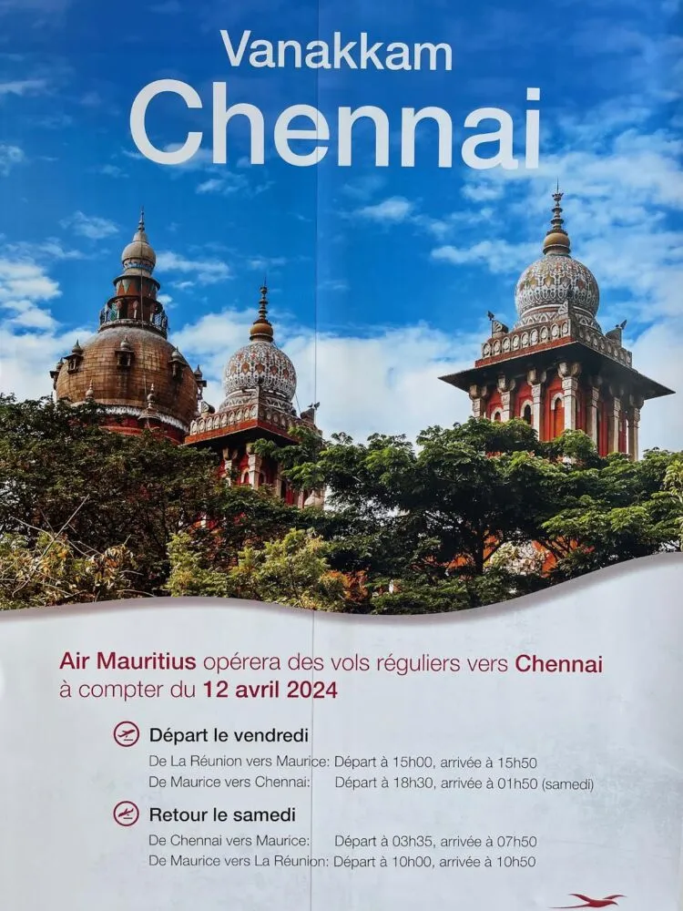 Cette liaison avait été assurée durant un certain temps par la compagnie régionale Air Austral. Mais cette dernière, lors du changement d’actionnaires, a cessé la destination Inde, malgré la demande insistante d’un Collectif local monté par le Dr Selvam Chanemougame. Air Mauritius mettre finalement en place un vol hebdomadaire entre notre île et Chennai, en passant par l’île Maurice.